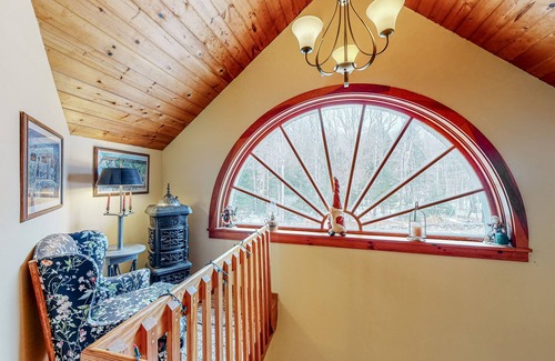 close your eyes and picture the quintessential woodsy vermont cabin – now open them, because you’ve found it with the four-bedroom, cherry-red vision Surrounded by trees, this pretty as a postcard hideaway offers a broad back deck, complete with a tree-lined view and private hot tub. This memorable gem is perfect for families with children - you will find plenty of children's toys, baby gates, and a Pack N' Play available.