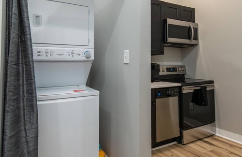 fully stocked kitchen, keurig coffee maker, dinnerware and silverware, toaster, and much more We are also within walking distance to some of our favorite local places to eat! If you are looking for LOCAL Dining options Rodneys on Broadway, Favas, Galvins, and Local Feed are just a few of our favorites. and for desserts try rebeccas, pretty girl sweets, and chocomania!