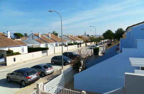 on the groundfloor: 2 bedrooms, 1 bath room, lounge-dining area, american kitchen Roofed and open terraces. Storage room with washing machine. On the upper floor with separat entrance from the outside: 1 bedroom, shower bath room, sun terrace. The house is completely furnished and equipped with air conditionning (hot/cold) in all the rooms, heating in the lounge, Sat-TV with international channels, wifi internet, sunbeds, garden furniture, barbecue, microwave, washing machine, etc.The area of Denia at the lovely Costa Blanca is the perfect holiday destination. Enjoy the mild climate all year round, long sandy beaches and the most beautiful green back country. Denia provides a very good infrastructure and a huge offer of leisure activities, a mondern Marina and a fishing port, an attractive historic centre and an enormous choice of good restaurants. Last but not least an interesting night live! The diversified 20 km long sandy beach offers something for everyone, water sport activities, calm areas, beach bars, cliffy bays in the nature reserve, great for diving and snorkeling. Denia is situated exactely between Valencia and Alicante, from both airports the holiday home can be reached within about 1 hour 10 minutes. Within 20 minutes to max. 1 hour you can reach several other lovely places on the coast, i.e. Javea, Calpe, Altea, Benidorm, an Alicante in the south, as well as Oliva, Gandia and Valencia in the north. Also a trip to the back country is worth to do, you will see lots of orange groves, almond trees and quaint villages between green hills and mountains. 2 renowned golf courses (Oliva Nova and La Sella Golf) are at only 9 resp. 13 km from the bungalow. Besides, there are several restaurants and also a gym with indoor pool and tennis courts near the bungalow.