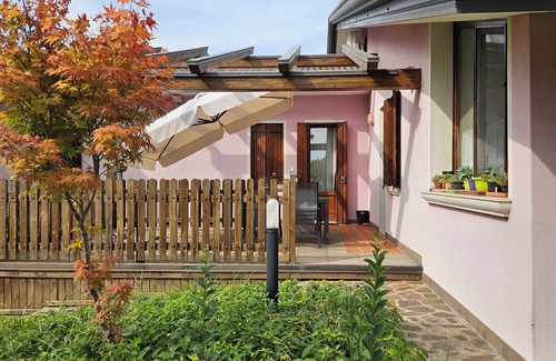 "Casa Miriam" is a pretty chalet portion with a large garden in a quiet area of the City of Padua (Salboro district) 5 km from the city center and about a kilometer from the tram terminus. E 'consists of a large fully equipped kitchen, linens, cookware, refrigerator and freezer, dishwasher, oven and microwave, small pantry with basic necessities; a bright living room with TV and sofa bed for 2 persons; a master bedroom with bathroom; a bedroom with two single beds; a bathroom with shower and sink; tavern with fireplace. The entire house is equipped with air conditioning. The house opens out on an outdoor veranda in the summer offers the possibility to eat outside.