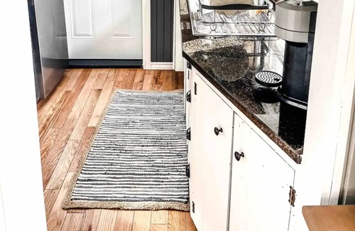 our accommodations include two bedrooms: one with a king bed and one with a queen The sofa also pulls out, so we can accommodate up to five people. The accommodations also include a fully equipped kitchen, dining area inside or out, fire pit, and a BBQ grill on the deck.