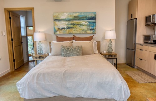 Tucked in a wooded one-acre lot, this new retreat blends luxury, nature and ease of access to Austin's events. The covered patio offers an ideal setting to embrace the morning serenity or indulge in sunset dining. High-speed internet ensures seamless remote work and HD streaming. Conveniently located between downtown Austin and the Hill Country is great for Hill Country weddings, wine country, SXSW, CODA or ACL Festival. Whatever you're here for, an unforgettable experience awaits..