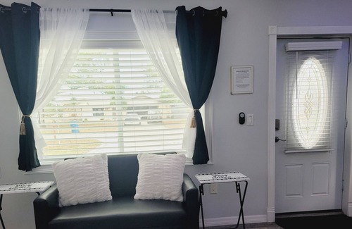 We are located on a Cul-de-sac street, on Hunters Lake. our Unit is a Private Suit with a separate private self-check-in entrance (No shared spaces besides the driveway). Furnished space with everything you may need for a comfortable stay. Big window that provides natural sunlight. You're welcome to use our back yard to Enjoy the beautiful view of the water and nature of Hunters Lake, including the sunrise and sunset. This unit includes a queen-size bed, footer bench, 2-seater sofa bed Coach, Dinning/eating Tables, kitchenette with a sink, dish soap& hand soap, hand sanitizer, A Mini fridge/ Freezer, k-cup Coffee maker, water kettle, cooking pots, disposable plates, disposable coffee cups, utensils, we will also leave you some snacks to start your stay: water, chips, Lipton or Maruchan soups ,4 coffee k cups, sugar, salt, pepper, oil . We also provide other amenities for the comfort of your stay: 2 towels, 2 wash cloth, 2 hand towels, 1 makeup remover towel, hand soap, body/hand lotion, shampoo, conditioner, body soap, emergency kit:(bandages, Q Tips, cotton swabs) toothbrush, and more.