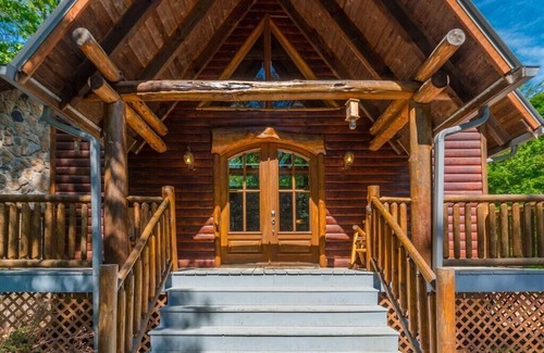 this cabin used to house our weddings and was custom-made by a local craftsman who really put their heart into the work, so it is perfect for your romantic getaway Everyone who comes here comments on the AMAZING work that was done. Many of the trees were recycled from the land it stands on. It features an indoor Jacuzzi tub, a full-size kitchen, a full size foosball table, a flat-screen TV in the bedroom with DVD Player. The living room has a smart TV for your shows, sports, and movies. This cabin is perfect for a couple to spend their Honeymoon or Anniversary or any special occasion. Just coming to this cabin is sure to turn any getaway into that special occasion that will make memories for days to come.