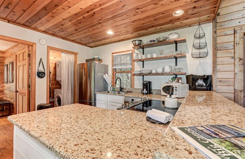 A beautiful log cabin in the sprawling Big Canoe community of North Georgia, Serenity Ridge offers modern upgrades, a cozy atmosphere, the conveniences of home, and great indoor and outdoor spaces. This pet-friendly vacation rental boasts 2 cozy bedrooms, 3 convenient bathrooms, space to sleep up to 6 guests, 2 parking spots, 2,500 square feet of space, and much more.