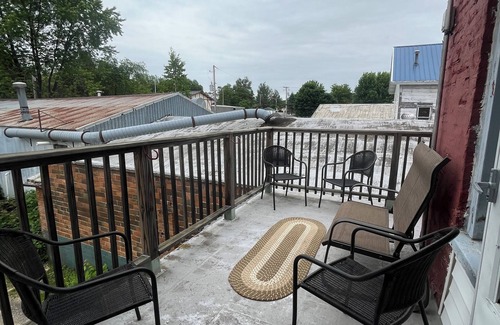 Welcome to this delightful apartment in Scandinavia. This apartment is over a retail store with no residential neighbors. The full apartment can provide up to 4 guests and is close to Tomorrow River Bike Trail. Private off-street parking: our driveway is to the left of the building (as you face it). Drive around the building and park parallel to the back porch. The lockbox has two keys - one on the outside and one to the apartment at the top of the stairs. Enter the back door (careful for the immediate step down) and go up the stairs immediately to your right. When going down the stairs, please keep your footing to the wider part of the winder stairs to help with safety..