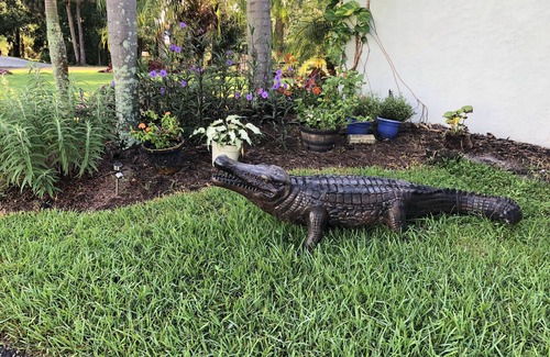 Eclectically decorated-Bringing nature in doors. Distressed Butcher block countertop w/a wash pale sink, Exposed pipes in the kitchen & shower w/ Edison lights for the industrial, yet nostalgic look. An antique-claw tub outdoor shower. FRESH & CRISP sheets on a brand-new King & Queen size Beautyrest mattresses. Premium pillows round off a restful nights rest/sleep. A great deal of care went into the build & décor, as we are continuously having family & friends visit & wanted a place for them, that was just as comfortable as my own home. No sofa indoors, only outdoor living area, however there is a 3 sided wrap around porch with gliders that can be moved/rearranged/relocated with ease. Situated on just over 2 acres, nestled next to the river. RV & boat trailer parking on site, Large fishing dock. Private driveway, Secure grounds, Pet friendly, large dogs ok, ^^^PET FEE IS FOR 1 ANIMAL, extra pets are subject to additional fees due upon arrival****Or added to your bill. Honesty is best policy! This fishing community is extremely laid back & quiet. The streets roll up early & there's VERY limited nightlife! Our crime rate is ultra low, our Sheriff William Snyder - doesn't mess around! We are approx. 10 miles from both I-95 & Florida's Turnpike, making it a convenient stop for travelers. An array of birds gather around the many feeders, providing soothing melodies. Manatee are year round in Florida and can be observed with ease from the rockers on the covered porch. Occasionally seeing a small alligator (they are native here folks) or the otter can been witnessed playing on the dock/water. on the dock, under the heavenly skies & is ideal for late night star gazing with a glass of fine wine & your best friend. 2 lounge chairs also for sunbathers. Newly planted, Thick, Dark Green Bamboo, Palm & Cypress trees are prominent, providing that extra layer of desired privacy. Our "Florida Shack in the Back" was a small building that came with the home we purchased in 2013, that we commonly referred to as The Shack. We watched the sun rise & set for 2 years before we finally decided on the desired layout & possible amenities it would include. The final product was more than we imagined. We are pleased to share our home with you & your family during your travels through our beautiful state.