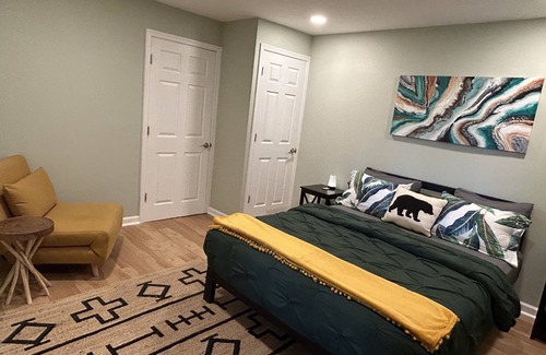 your guest suite is on the ground floor, recently finished, with its private entrance (separated from main floor), with all amenities you'll need you'll have the deck upstairs and the outdoor spaces (hammock, swings, fire pit, charcoal grill, etc) all to yourself!