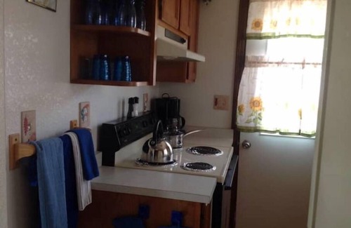 the cozy guest house is relatively self contained....but you can explore or wander the rest of the 40 acres. High speed Internet, Starlink, wifi, and ROKU TV with some DVDs & VHS are included ......washer & dryer in the Ranch House can be arranged to use. The kitchen is well equiped, you'll find a Bar-b-Que to use on your porch and a fire pit for campfire songs, and toasting marshmallows! Please bring firewood. There's a deep well, with delicious, pure, refreshing, cold on-site water. Enjoy the telescope for night viewing.The sunrises, sunsets, and brilliant pollution-free blue skies invite you to see at least 30 miles with clarity.