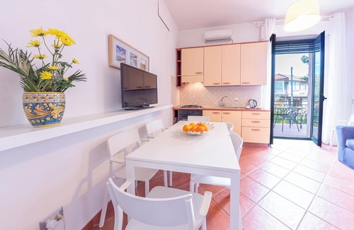 Detached house in villa with large green spaces, on the ground or first floor, with two, four, six or more beds, equipped kitchenette, bathroom, large terraces with lava stone table and chairs to comfortably dine, barbeque, area relax with table tennis and table football, parking space, possibility of bike rental, free wifi, washing machine. Ideal for families and for those who want to feel at home even away from home. There are accommodations with a double bedroom and a living room with a sofa bed for two people and a kitchenette, on the ground floor with large terraces and green spaces, there are also larger accommodations with two independent bedrooms, two bathrooms, living room and terraces..
