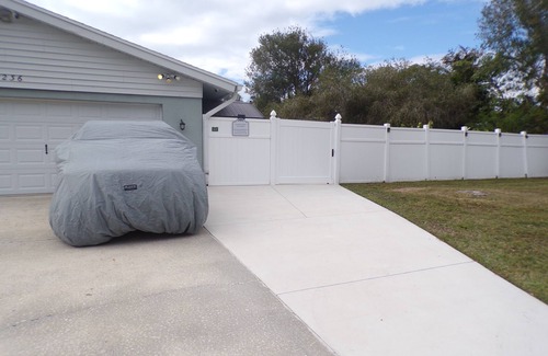 outside has great lighting for late arrivals and evenings on the patio! as well as outdoor grounds security for your safety Our guests truly enjoy the comfort of arriving at a safe home location. Guests will park in front of the Siesta Studio Welcome sign on the designated guest parking pad to the right of the driveway. Please no parking on the driveway or in front of the garage door. Guests will enter through the white gate in front of where guests park. Through the gate you will enter upon the guest's patio. To the left of the patio is the entrance foyer door with a Siesta Studio sign. The door will have a digital keypad. You will need to enter the access code provided for your reservation. Your access code is only good from your check in time till your check out time. You will enter into a small foyer, finding a light switch inside to the right of the door for the foyer light to be turned on if needed. You will see a door #1 marked private and door #2 marked The Siesta Studio. You have arrived.... The studio entrance door will have your access code as well.