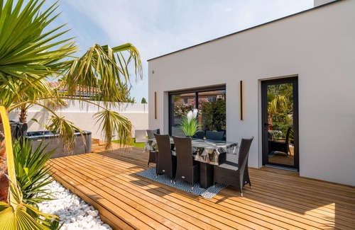 Signature Suite, Elegance with Private Jacuzzi is located in Le Grau-dʼAgde. Signature Suite, Elegance with Private Jacuzzi provides accommodation, featuring Sports/Activities, Internet, Barbecue/Outdoor Cooking, among other amenities. This House features Sports/Activities, Internet, Barbecue/Outdoor Cooking, to make your stay a comfortable one.