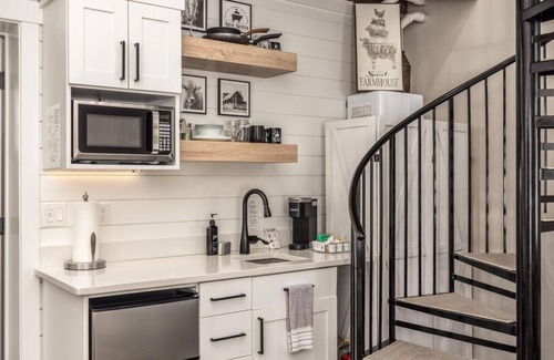 this silo sleeps 1 to 4 It has 2 queen beds, kitchenette with fridge, microwave, and full dining utensils for 4. Openconcept, valuted ceiling . Loft with bed. minisplit hvac with whisper quite ac and heat, walk in shower, firepit and bbq, free wifi