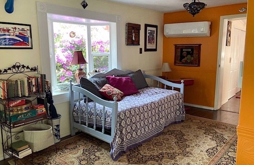 Guest cottage located 15 minutes from Historic downtown Silverton, 10 minutes from Silverton Reservoir and 20 minutes from Silver Falls State park. Master bedroom with Queen size bed, upstairs loft with 2 extra long twin beds, and twin size daybed in living room with twin trundle. Kitchenette has microwave, toaster, coffee maker, suitable for breakfast and heating up food. Full size fridge. Minimum stay 2 nights, Maximum stay 4 nights. This is a private guest cottage separate from our residence. Experience a taste of county life with Dogs, Cats, Alpacas, Goats, Turkeys & Chickens on our 9 acre's. Note for guests: While we are not “ off the grid”, we can and do loose power, have sketchy cell service and problems with * Wi fi. We do have a generator which will run the essentials. The downstairs is heated and cooled by a new mini split and will sleep 4 guests comfortably. There is a window air conditioner in the loft upstairs, but on hot days it still gets very stuffy and warm. We are in the COUNTRY, bugs and critters live here. We do not use Herbicides or Insecticides as we are a home to Bees. We our best to keep unwelcome visitors at bay, but sometimes they drop in uninvited. For guests who have allergies- we do have cats and dogs- and seasonally there is field buring in the area. PLEASE read the welcome email from VRBO that you will receive prior to your stay. It will have detailed directions and contact numbers, the property can be challenging to find.