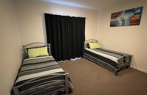 bedroom 3 has 2 single trundle beds (4 singles altogether) as well as built in robe and 3 way bathroom with large vanity area
