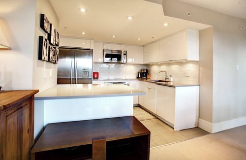the open concept living space/kitchen makes it a pleasure to socialize and enjoy quality time together The suite has an updated kitchen with quartz countertops and stainless steel appliances and is fully equipped for any chef to make a gourmet meal. If hanging out inside isn't for you, kick back and relax in the car large hot tub or the heated outdoor pool, perfect year round amenities to keep you loose. The ability access the ski slopes in less than 2 minutes makes this location an absolute pleasure. In the summer, take a leisurely stroll down to the Mountain and you are 10 minutes to Whistler Village, even less to access the numerous restaurants and pubs in the Upper Village stroll.