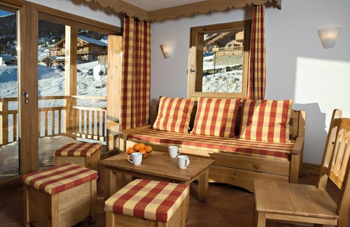 Made of wood and stones, the Résidence Club MMV Le Hameau des Airelles**** is located in the center of Montgenèvre new district, it is a ski-in ski-out residence located 200 m away from the cable car of the Chalvet and 500 m away from the shops and the centre of the resort. A free shuttle service will enable you to get easily to the heart of the resort. The residence offers spacious and well equipped apartments. Benefit from one access per day and per person to the relaxation area with heated outdoor swimming pool, whirlpool bath, sauna, hammam. Surface area : about 31 m². View mountain. Living room with bed-settee. Bedroom with double bed or 2 twin beds. Kitchen with kettle, coffee machine (filtre), microwave grill, dishwasher, 2 vitroceramics cooking rings, fridge. Shower room with bath-tub or shower. Balcony OR Terrace..
