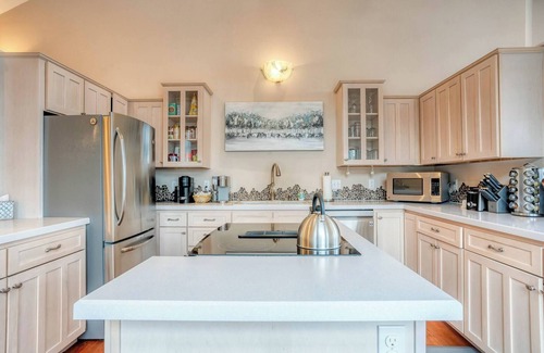 the home is complete with separate office space for two Exercise equipment is available for adult use only and includes a weight set and bench and Peloton bike. A TV is set up to use while you work or workout. In this space you will find an additional fridge and freezer for extra food and beverages.