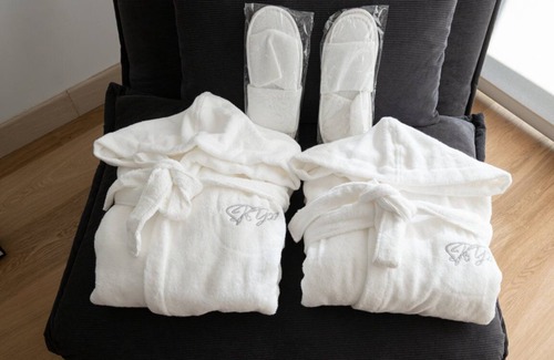 as you settle into this 1-bedroom, 2-bathroom rental, you'll find a dining area and air conditioning Connect to the WiFi, or get cozy in front of the TV. Bathroom amenities include a hair dryer, a bidet, and towels. Feel free to prepare a home-cooked meal with the oven, stovetop, and dishwasher, as well as the electric kettle, ice maker, and microwave. And you can even pack a bit lighter because there's a washer and dryer. Other amenities include bed sheets, an ironing board, and heating.