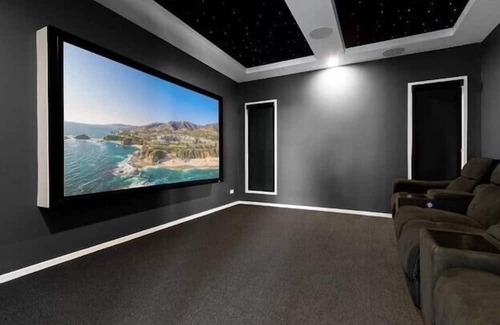 media room with 4k projector and dolby suround sound