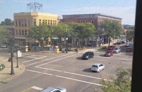 this unique space has a style all of it own SkyBox is New Philadelphia's premier lodging experience. 1800s charm mixed with updated amenities such as electric fireplaces, unique fixtures ,led lighting , smart toilet with bidet , asian panel shower, lighted faucets, theater seating & more Offering the best views in town, and a luxurious lodging experience for an affordable price. Located downtown New Philadelphia , a stone's throw from restaurants and bars and Kent performing arts center.
