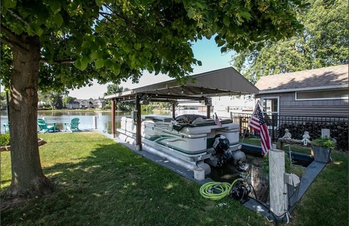 one of the unique features of this vacation rental is the private dock Bring your own boat or take advantage of our 24-foot pontoon rental for some water fun! The lake beckons you for fishing, swimming, or a serene boat ride at sunset.