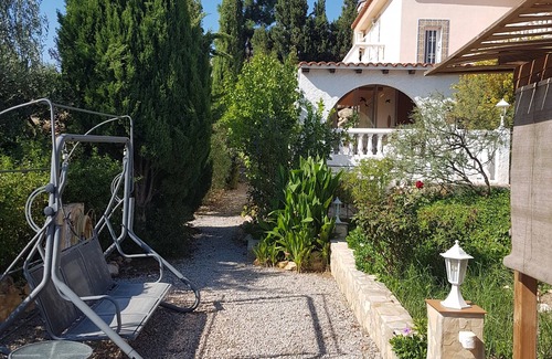 you rent a separate apartment (not the house), with private pool and garden a separate vacation rental in the style of a charming studio the large swimming pool of urbanizacion with restsurant is 2 minutes away