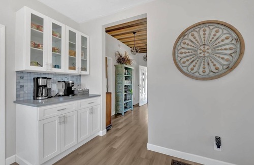 welcome to our tranquil downtown bristol home, a mere half mile from the lively state street area and hard rock casino Relax in our tastefully furnished interior or unwind in the inviting outdoor oasis featuring a cozy fire pit, hot tub and covered seating or enjoy the charm of the wrap-around porch.