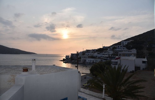 the apartment is 103 m², height ceiling, stone wall creating a comfortable atmosphere and temperature It has 3 bedrooms with windows looking at the sea, one living room, an average size kitchen fully equipment , a bathroom and a beautiful spacious veranda with panoramic view of Katapola bay, Rachidi and Mondoulia hill (ancient city of Minoa).
