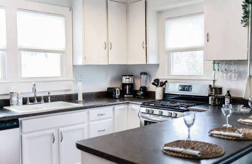 this stunning 2-bedroom, 1-bathroom home is situated in a sanctuary on chesapeake bay It has breathtaking bay views, a private deck, and a fully equipped kitchen. The home can accommodate up to 8 people with one king bed, two twin bunk beds, and a Queen Sleeper Sofa. There's free Netflix and Hulu, and air mattresses can be added for an additional fee.