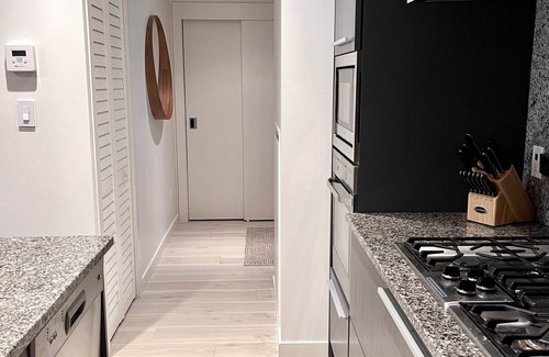 solace in the city offers a wonderful space to relax and unwind after a day exploring the city, and to wake up in your comfy queen bed to lushness not expected in a city suite The unit is a comfortable temperature in both summer (A/C) and winter and kitchen is well-equipped kitchen for all your cooking needs. There is also a desk area, high speed internet, 55” Smart TV with Netflix access and washer and dryer.