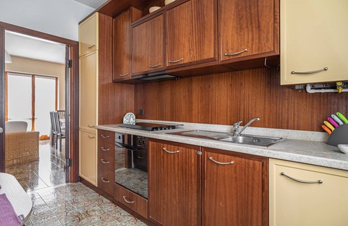 the flat has everything guests need: linen, towels and a fully equipped kitchen with dishes and appliances