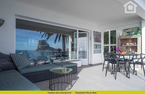 FANTASTIC HOUSE IN FRONT LINE WITH BREATHTAKING PANORAMIC VIEWS AND DIRECT ACCESS TO THE BEACH.This beautiful house is located in an excellent location in Calpe, next to a fantastic sandy beach and just 3 minutes walk from the town center.Less than 15 minutes by car you will find the charming towns of Moraira and Altea.Its fantastic location at the sea front will allow you to enjoy MAGNIFICENT PANORAMIC VIEWS of the sea and of the Peñon of Ifach´s Natural Park. The villa has several large terraces decorated with different trees and plants perfect for reading or enjoying a family meal while admiring the sea. Another fantastic area of the house is its large outdoor patio, the ideal place for a siesta in the shade, listening to the soothing sound of the waves.The house is divided into two different floors. The first floor holds 1 bedroom with bathroom en-suite, the second floor holds 2 bedrooms, one with two single beds and another with a double bed and bath en-suite all equipped with air-conditioning. The three rooms offer fantastic sea views and the double bedroom on the first floor has a direct acces to the their garden.The kitchen is modern and has a direct acces to the garden. It opens on one side of the living room and on the other side to the shaded outdoor lounge.You will find that this is the perfect place to swim and to snorkel, thanks to the great richness of the local submarine flora and fauna.A FANTASTIC HOUSE BY THE SEA WHERE YOU AND YOUR LOVED ONES WILL ENJOY A PERFECT HOLIDAY!IMPORTANTGroups of young people under 30 are not allowed, unless they are accompanied by an older adult. If this rule is not met, entry will be denied and there will be no option for a refund.No pets of any kind are permitted. We are sorry.Mass gatherings are not allowed. Only visits from friends and family are permitted. Overnight stays in the home are not allowed to exceed its capacity.Smoking and lighting candles inside the home are prohibited..