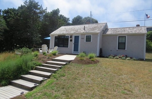 Charming cottage, perfect for your next getaway. Its sophisticated decor and lovely wooden views create a serene and inviting atmosphere. This rental comfortably sleeps four, featuring one king bed and two twin beds. The space is airy and beautiful, filled with an abundance of natural light. The open-concept living, dining, and kitchen area offers a simple yet elegant design. You'll also appreciate the lovely outdoor space, perfect for relaxing and enjoying the surroundings. The cottage boasts an ideal location, offering easy access to almost any beach on Nantucket Sound, Nauset Beach, and the Cape Cod National Seashore. A picturesque trail leads directly to Taylor Pond, perfect for kayaking or bird watching. Plus, Schoolhouse Ice Cream is just a short walk or drive away. For your convenience, the town of Harwich is about five miles in one direction, while the charming town of Chatham is a similar distance in the other, offering a variety of shops, restaurants, and attractions. As a special gift, this rental includes a "Welcome Bag" – a reusable tote filled with paper and cleaning products, compliments of the owner. We would be thrilled to help you plan your stay. Please call us at Chatham Rentals to learn more and book your unforgettable vacation..