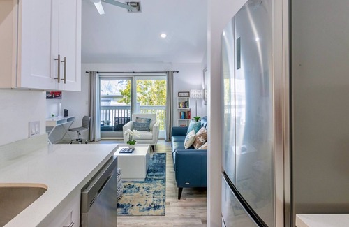 the fully-outfitted kitchen sits off the living area with luxury appliances and tools, equipped with everything you'll need to prepare a meal at home in between enjoying the fantastic array of old town restaurant options, all just a few blocks walk away Featuring both a drip coffee maker and a Keurig, not to mention Cuban Coffee Queen is right downstairs, all of your coffee needs will be well taken care of.