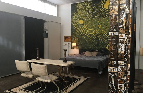 Welcome to our SouthWestern Camelot. Even without the drawbridge, you will enter into another world. Our quiet, beautiful Castle holds Art treasures, a unique traveling experience. We converted a 1950’s Gas Station, 12’ high ceiling, into multi living spaces inviting dreaming exploration. Weekly and Monthly Discounts.