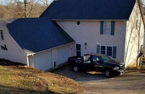 please be aware that this home is nestled in a wooded lakeside neighborhood, so encountering bugs during nighttime outdoor activities is to be expected Additionally, the driveway is quite steep, but there's parking available for up to three cars at the bottom, making it accessible for elderly guests. This property offers ample space for gatherings, ensuring everyone can enjoy quality time together without feeling crowded. It's the ideal place to bond with family and friends!.