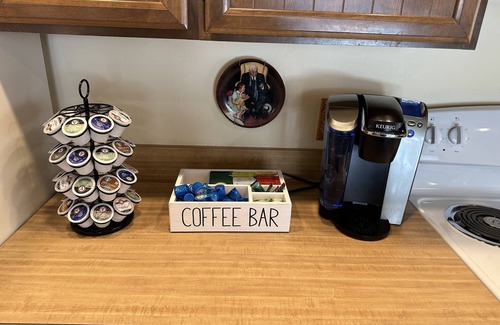 this generous space has 2 bedroom, plus a truly comfortable futon and a very comfortable couch that sleeps 1 1 bath with a shower, laundry room, full kitchen and open living room. There is a patio with a propane grill and a cozy seating area looking out to our back yard.
