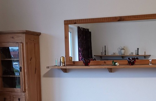 2019 refurbished 2-room apartment with balcony in a quiet location, right in the center. Bright spacious rooms in the 1st. OG. Living room with kitchen, large bathroom with shower and washing machine, bedroom with double bed. Living room and bedroom have satellite TV, free Wi-Fi throughout the apartment. Fully equipped kitchen with fridge, freezer, microwave, oven, cooking island with ceramic hob, kettle, toaster, coffee maker, etc. Lovingly furnished with everything you need.
