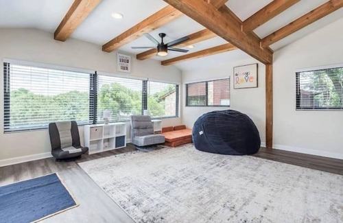 Nestled in a quiet neighborhood near the Austin Airport, this delightful house boasts 5 bedrooms, including 2 queen beds, 2 bunk beds, 2 twin beds, and 1 king bed. With 4 bathrooms equipped with showers, bathtubs, and hair dryers, guests will feel right at home. The property features heating, iron, WIFI, AC, a hair dryer, and a washing machine for added convenience. Stay in this cool and amazing space and make unforgettable memories with your loved ones. Check out our Welcome Book which has many local recommendations. Also there are our closing/exiting procedures. These are simple and easy to follow. Feel free to reach out to us during your stay - we're happy to suggest local spots to check out..