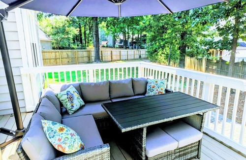 this home is centrally located in raleigh with easy access to anything you need 20 mins from RDU, 7 min to the Duke Raleigh Hospital, and 15 mins to downtown Raleigh. It's walking distance to the grocery store, shops, restaurants, bars and a large park and playground..