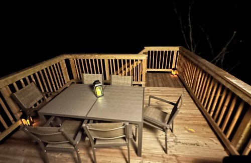 unwind on the new deck with a tranquil, private view of the woods It’s a peaceful spot for morning coffee, yoga stretches, or an evening drink while you recap the day’s adventures.