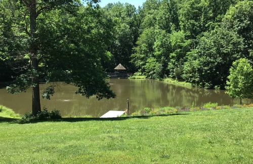 Forget your worries in this spacious and serene space. Adjacent to a peaceful pond with a dock and gazebo, this large studio is perfect for a couple seeking a quiet getaway for a weekend or an individual seeking a comfortable alternative to a hotel. The studio has a large sitting room with a wood-burning fireplace, a separate eating area (or office) and a spacious kitchenette. There is a lovely firepit by the pond and also an EV charging station available for our guests..