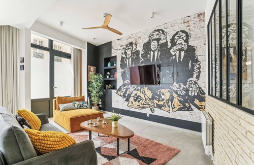 if you're looking for the very essence of the dynamic, friendly atmosphere of the croulebarbe district, this is the opportunity for you Immerse yourself in this enchanting apartment that perfectly combines space and modernity, infused with a refined urban touch. Offering an authentic Parisian experience and all the comforts you need, this ground-floor street-level space can accommodate up to 10 people. it features :