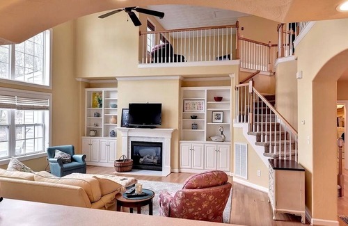 Relax with the whole family at this peaceful place to stay. This immaculate 4 bedroom, 3.5 bath home boasts over 3600 sqft. and offers a bright and open floor plan, featuring vaulted ceilings, spacious loft, recessed lighting throughout and a gorgeous family room with marble surround gas fireplace. The home also features spacious 1st and 2nd floor master suites with trey ceilings, walk-in closets and jetted tubs and separate showers..