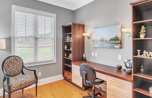 Beautiful Home located in the heart of the Sandhills, 4.5 miles North of Pinehurst, NC. Located in a very quiet community. 4 Master Suites with private bathrooms and can sleep up to 12 people. This home features a beautiful, full kitchen to cook your meals in, and it also has access to a shared pool for those hot days where a dip in the pool sounds just lovely. There is a fire pit for your nighttime enjoyment as well!.