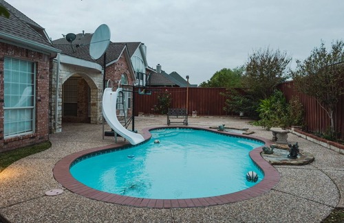 This memorable house is the perfect home base for your trip to Grand Prairie. With 6 bedrooms, including 1 king bed, 3 bunk beds, and 2 queen beds, there's plenty of space for all your guests. The 3.5 bathrooms are equipped with amenities like a jetted bathtub, shower, and hair dryer. You'll also find heating, AC, a washer, dryer, WiFi, and an iron for your convenience. Garage is closed off to guest. Experience what Grand Prairie has to offer with a stay at our awesome house..