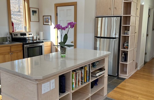 newly updated kitchen with new granite island, refrigerator, air fryer/microwave/toaster Nice layout for entertaining and perfect acoustics for musician. Off quiet road, however, within six minutes to town center and shopping. Adjacent to the historic village of Kripplebush where there is a local museum. Hiking trails on land. One bike available.