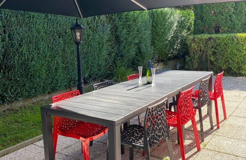 For a weekend or a stay, this large house welcomes you in a quiet area. You will appreciate the volumes and the private outdoor spaces.