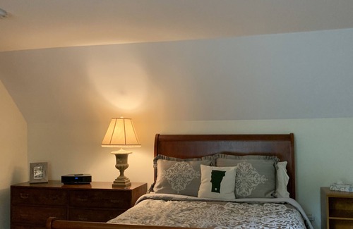 Our home offers 3/4 bedrooms with 2 full baths and 2 half baths. It features a soaring great room with natural woodwork, large windows and an open sunny exposure. The great room offers a vaulted cathedral ceiling, and gas fireplace in a floor to ceiling stone hearth. The main level has wood and tiled floors throughout, a large open concept kitchen and dining area with stainless appliances and counters. The main level also offers a den/sunroom for working, eating, game time or relaxation. There's a master (king) bedroom suite with tiled tub/shower combination. The second floor has (2) dormered queen bedrooms, each with a twin trundle bed and a shared tiled bath with tub/shower combination. Come enjoy the cozy loft reading nooks overlooking the vast great room. The lower level offers another sleeping area (double), family room, laundry room, pool table and half bath. Enjoy the (2) spacious decks running the full length of the front and rear of the house. Sit and take in the long range mountain views, spectacular sunrises or grill at the end of a busy Vermont day. Of course, there’s a fire pit in the backyard for those after dinner conversations! Also, swings for the little ones..